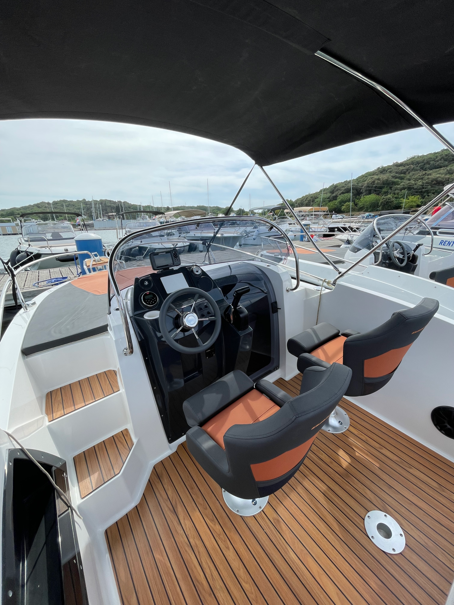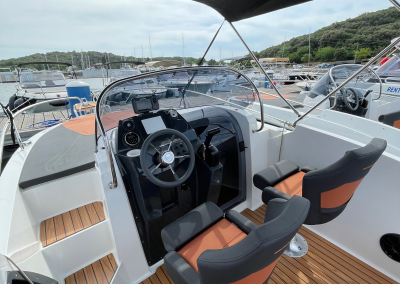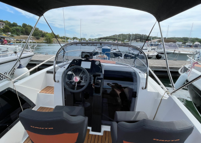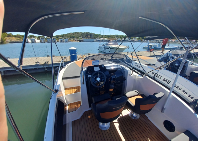 The Banta 545 Sundeck (2022) is a compact, comfortable, and easy-to-handle motorboat — ideal for guests who want a relaxed day on the Adriatic. With its streamlined hull and a strong 115 HP Yamaha engine, the boat offers a smooth, enjoyable ride even for first-time renters. The spacious front sundeck invites you to stretch out, relax, and enjoy the sun while anchored in crystal-clear bays. At the stern, a comfortable seating area creates the perfect spot for snacks, conversation, and sea-view moments. Whether you’re planning a family swim day, a romantic escape, or a casual cruise between beaches, Banta 545 makes every moment simple and enjoyable. This boat is the ideal match for renters who want freedom, comfort, and fun in a compact package.